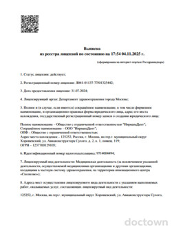 Специализируется на проведении гигиены полости рта, отбеливании (ZOOM, Klox fast&mild), лечении кариеса и некариозных поражений, эндодонтическом лечении с использованием Ni-Ti инструментов, реставрации... читать далее