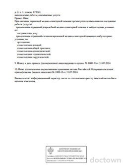 Стоматологическая клиника предоставляет услуги по стоматологии, включая терапию, ортопедию, ортодонтию, хирургию, имплантацию. Прием проводится по предварительной записи.
