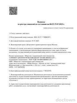 Прием прошел отлично. Дарья Михайловна очень хороший врач, внимательный, грамотный. Специалист меня выслушала, осмотрела, пропальпировала, дала рекомендации и выписала направление на анализы.