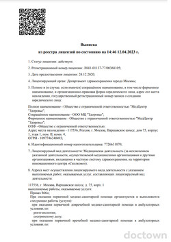 Приём был отличный! Доктор меня посмотрела, сделала всё грамотно, видно, что она знающий специалист.